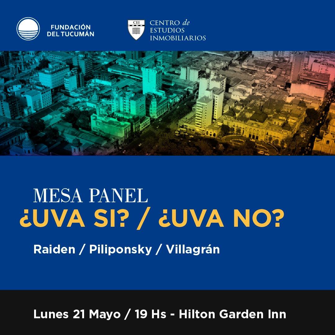 Virgilio Raiden, Sebastian Piliponsky y Luis Eugenio Villagran reflexionaron junto con el público asistente a la mesa panel ‘UVA si – UVA no’, organizada por la Fundación del Tucuman y su Centro de Estudios Inmobiliarios, realizada el pasado Lunes 21 de mayo.